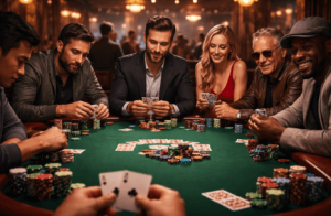 线上德州通常由多名玩家参与,每人获得两张底牌,并通过翻牌、转牌与河牌三个阶段逐步构建最佳牌型。最终通过比牌或迫使对手弃牌赢得底池。